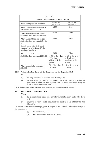 11.18 When defendant liable only for fixed costs for starting claim (45.3)