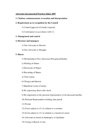 Advocates Incorporated Practices Rules 2007
