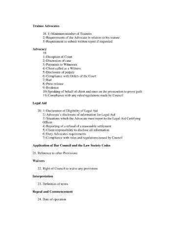 2) Requirements of the Advocate in relation to his trainee