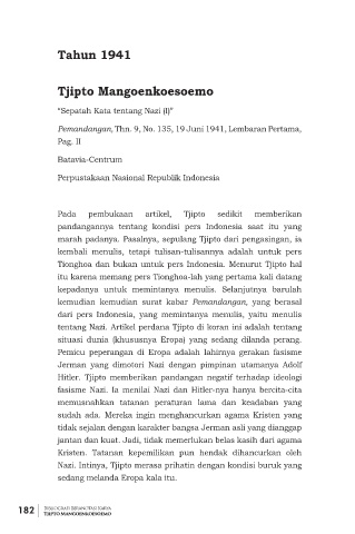 tentang Nazi. Artikel perdana Tjipto di koran ini adalah tentang