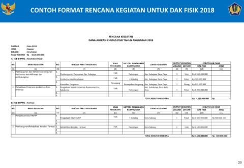 CONTOH FORMAT RENCANA KEGIATAN UNTUK DAK FISIK 2018