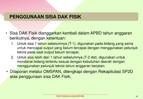 • Sisa DAK Fisik dianggarkan kembali dalam APBD tahun anggaran