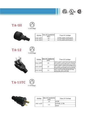 13A 125V 16 SJTW,SJEW,SJOW,HSJO
