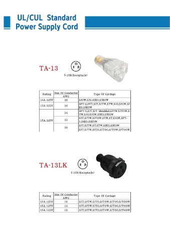 13A 125V 16 SJT,SJTW,SJTO,SJTOW,SJTOO,SJTOOW