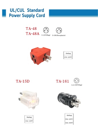 TA-40                                                        Size Of Conductor                            Rating                                       Type Of Cordage                                                 mm2                                               3.5mm2                          20A 125V                                             HVFF                                               2.75mm2                       TA-53                                                Rating        Size Of Conductor              Type Of Cordage                                                 mm2                           7A 250V             0.75mm2                         VCT