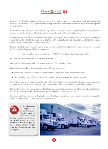 • Número de vehículos a contratar con la empresa logística en cada mercado/territorio.