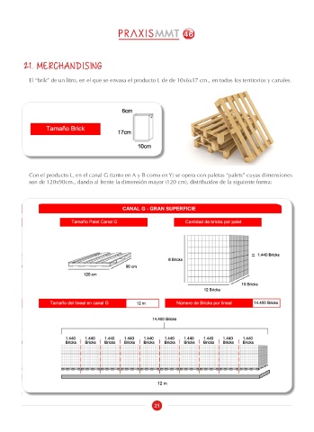 Con el producto L, en el canal G (tanto en A y B como en Y) se opera con paletas “palets” cuyas dimensiones
