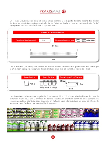 En el canal S (autoservicios) se opera con góndolas normales y cada punto de venta dispone de 5 metros