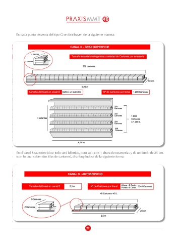 En el canal S (autoservicios) todo será idéntico, pero sólo con 1 altura de estanterías y de un fondo de 25 cm.