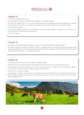 La voz en off va diciendo: Hay vacas con mucha suerte, vacas que pastan en muchos prados, muy verdes,