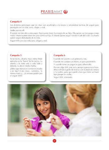 abuela y la nieta una a cada lado y Y cuando tomo un yogurt es para saborearlo.