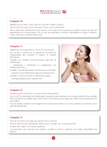 esperándote con la mesa puesta. Por eso hay que aprender a cuidarse. (Tomándose el yogurt.) Proteínas,