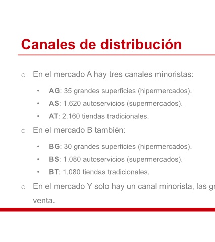 o En el mercado Y solo hay un canal minorista, las grandes superficies (YG), con 200 puntos de
