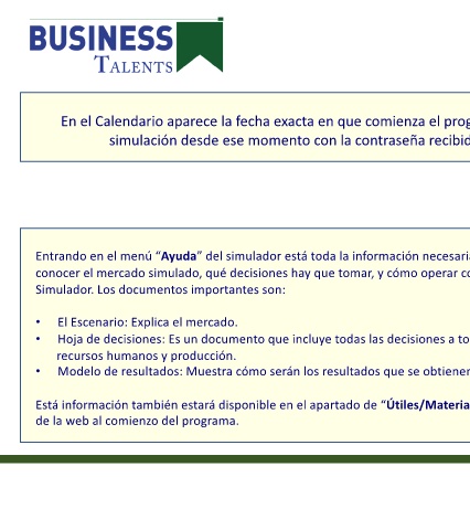 conocer el mercado simulado, qué decisiones hay que tomar, y cómo operar con el