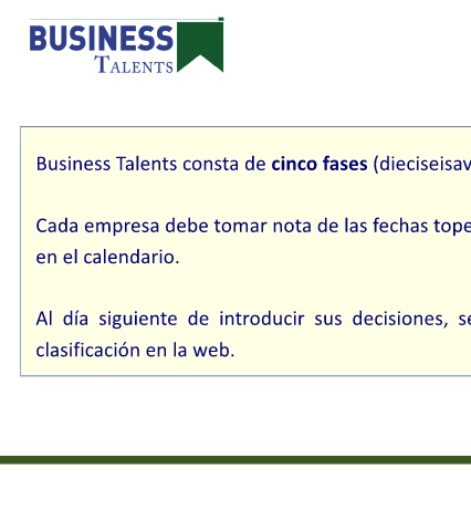 Business Talents consta de cinco fases (dieciseisavos, octavos, cuartos, semifinales y final nacional).