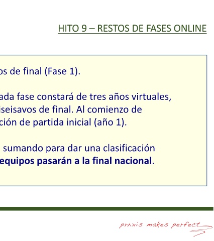 Desde octavos de final (Fase 2) en adelante, cada fase constará de tres años virtuales,