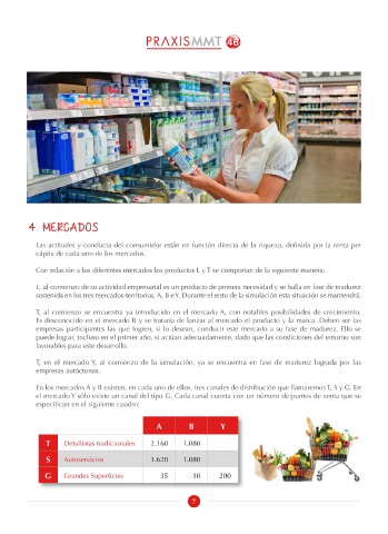 En los mercados A y B existen, en cada uno de ellos, tres canales de distribución que llamaremos T, S y G. En