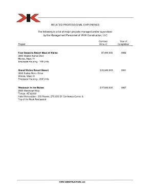 The following is a list of major projects managed and/or supervised