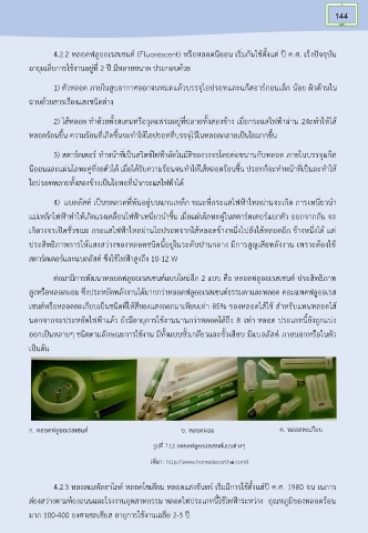 4.2.2 หลอดฟลูออเรสเซนต์ (Fluorescent) หรือหลอดนีออน เริ่มกันใช้ตั้งแต่ ปี ค.ศ. เร็งปัจจุบัน