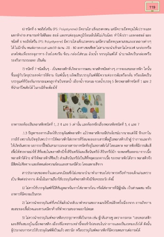 6) ชนิดที่ 6 พอลิสไตรีน (PS: Polystyrene) มีความใส แข็งแรงคงทน แต่มีความยืดหยุนให้เปราะและ