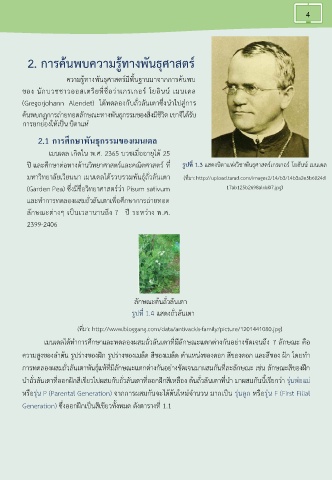 ปี และศึกษาต่อทางด้านวิทยาศาสตร์และคณิตศาสตร์ ที่ รูปที่ 1.3 แสดงบิดาแห่งวิชาพันธุศาสตร์เกรเกอร์ โยฮันน์ เมนเดล