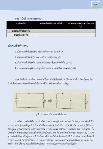 1. เมื่อฝอยเหล็กไม่สัมผัสกัน หลอดไฟฟ้าสว่างหรือไม่ อย่างไร