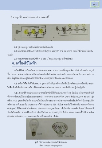 2.2 ถ้าไส้หลอดไฟฟ้า A หรือ B หรือ C ในรูป ก และรูป ข ขาด หลอดขาด หลอดไฟฟ้าที่เหลือจะเป็น
