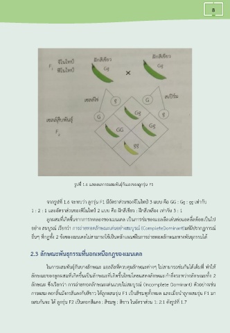 จากรูปที่ 1.6 จะพบว่า ลูกรุ่น F1 มีอัตราส่วนของจีโนไทป์ 3 แบบ คือ GG : Gg : gg เท่ากับ