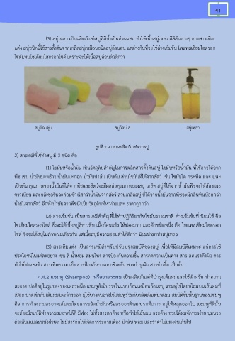 4.4.2 แชมพู (Shampoo)  หรือยาสระผม เป็นผลิตภัณฑ์ที่บํารุงเส้นผมและใช้สําหรับ ทําความ