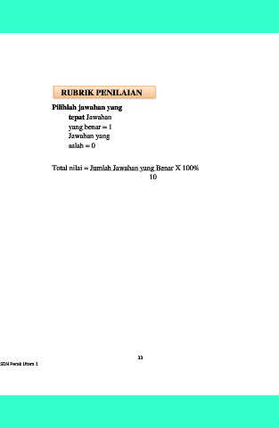 RUBRIK PENILAIAN Pilihlah jawaban yang tepat Jawaban yang benar = 1 Jawaban yang salah = 0 Total nilai = Jumlah Jawaban yang Benar X 100% 10 33 SDN Perak Utara 1