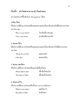 ประโยคค าถามที่ขึ้นต้นด้วย Wh-questions ได้แก่