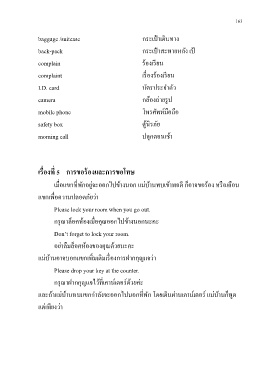 และถ้าแม่บ้านพบแขกก าลังจะออกไปนอกที่พัก โดยเดินผ่านเคาน์เตอร์ แม่บ้านก็พูด