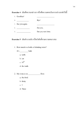 Exercise 4 เติมข้อความกล่าวลา หรือข้อความตอบรับการกล่าวลาต่อไปนี้