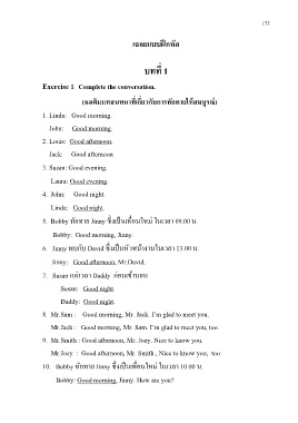 (จงเติมบทสนทนาที่เกี่ยวกับการทักทายให้สมบูรณ์)