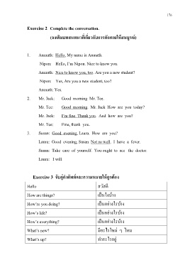 (จงเติมบทสนทนาที่เกี่ยวกับการทักทายให้สมบูรณ์)