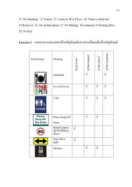 Exercise 2 จงบอกความหมายของป้ายสัญลักษณ์และสถานที่พบเห็นป้ายสัญลักษณ์