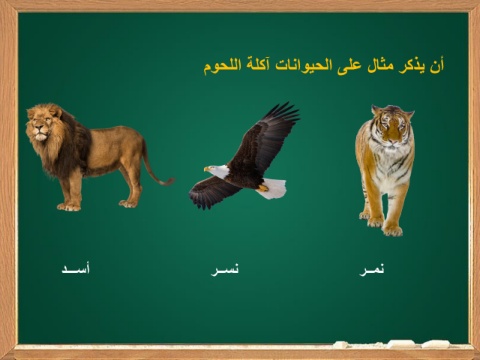أن يذكر مثال على الحيوانات آكلة اللحوم نمــر نســر أســـد