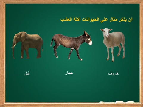 أن يذكر مثال على الحيوانات آكلة العشب خروف حمار فيل