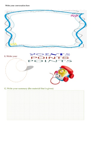Write your conversation here E. Write your G. Write your summary (the material that is given)