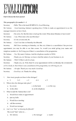 Secretary : Hello. This is the bank BUMIDAYA. Good Morning.