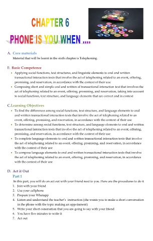 transactional interaction texts that involve the act of telephoning related to an event, offering,