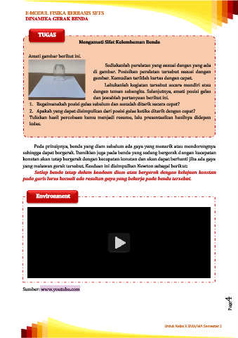1. Bagaimanakah posisi gelas sebelum dan sesudah ditarik secara cepat?