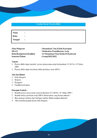 Mata Pelajaran : Otomatisasi Tata Kelola Kearsipan