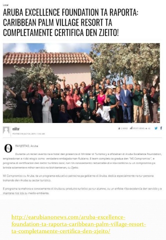 http://earubianonews.com/aruba-excellence- foundation-ta-raporta-caribbean-palm-village-resort- ta-completamente-certifica-den-zjeito/