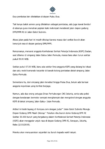 Akses jalan pada hari ini masih ditutup karena massa dari serikat buruh akan