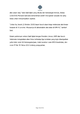 aksi unjuk rasa," kata Said Iqbal yang dikutip dari keterangan tertulis, Selasa