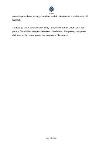 Selanjutnya untuk kenaikan iuran BPJS, Timbul mengatakan, untuk buruh dan