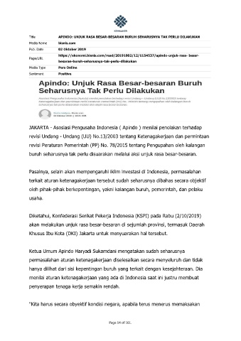 Title APINDO: UNJUK RASA BESAR-BESARAN BURUH SEHARUSNYA TAK PERLU DILAKUKAN