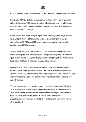 Koordinator ABJ Ajat Sudrajat menyampaikan sedikitnya 4.500 buruh akan ikut