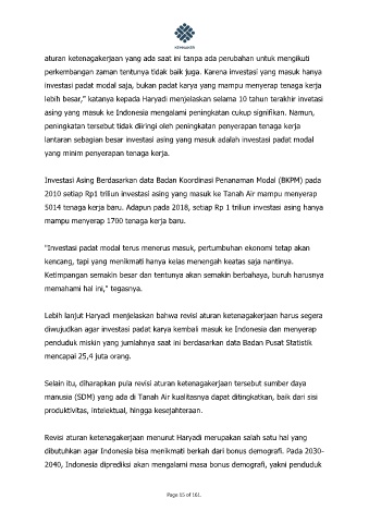 diwujudkan agar investasi padat karya kembali masuk ke Indonesia dan menyerap